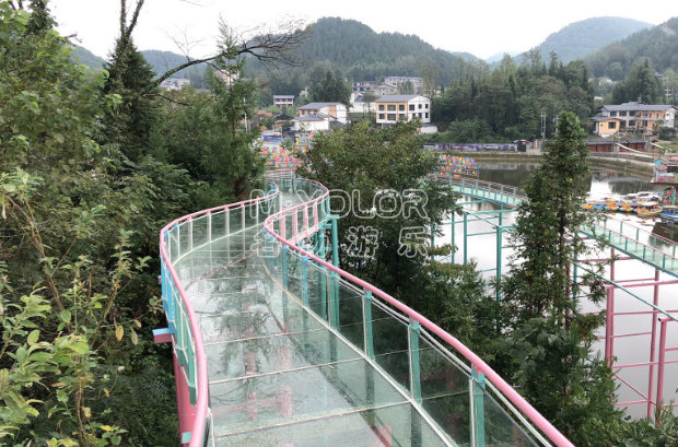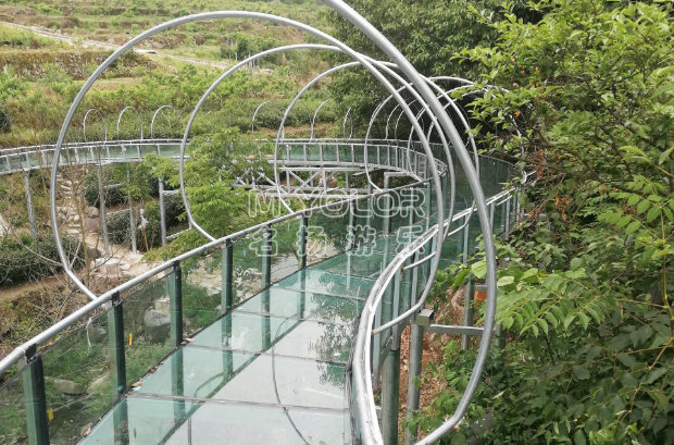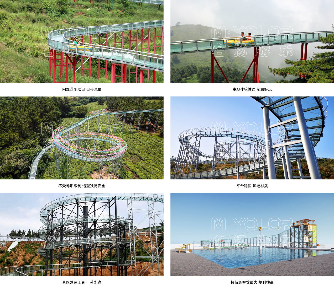 現(xiàn)代化的玻璃與自然生態(tài)的山林、靜謐的山體形成極為鮮明的對比。玻璃滑道巧妙的利用自然山川的優(yōu)美環(huán)境,又較好的保護(hù)了山地和植被,是山地旅游景區(qū)中最靚麗的風(fēng)景線。