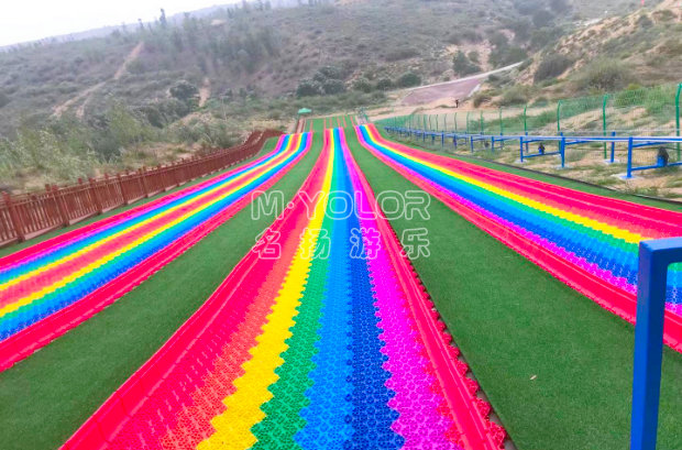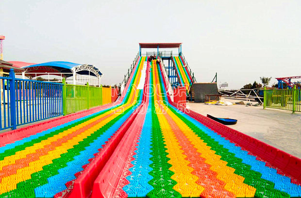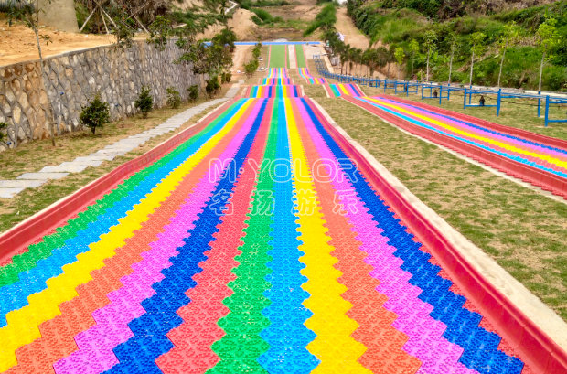 七彩滑道即旱雪滑道、也叫七彩旱雪、七彩雪圈滑道,是旱雪的一款產(chǎn)品,該產(chǎn)品可以根據(jù)客戶要求制定顏色,一般會規(guī)劃1至4條為宜,兩條至三條為多數(shù)的景區(qū)選擇,場地基礎(chǔ)建設(shè)一般依山體土坡建設(shè)或者鋼結(jié)構(gòu)搭建坡度。顏色鮮艷,遠(yuǎn)遠(yuǎn)望去宛如幾道彩虹傾斜而下,能夠讓人看起來心情愉悅,更加吸引游客,七彩滑道具有施工方便,雪圈潤滑性好,拼接易安裝的特點,可以大大降低施工成本,外形美觀、經(jīng)久耐用,畫外使用可保證長期艷麗,不褪色。操作簡單,體驗性強(qiáng),老少皆宜,是景區(qū)一個低投資、高回報的景區(qū)二消項目。