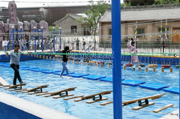 水上拓展是由兩岸水泥基礎(chǔ)上的兩套鋼構(gòu)作為支撐。鋼構(gòu)下方連接鋼索成U型,鋼索間有一定間隔,依托在水上的拓展活動,水上拓展兼詳細能和實踐的綜合素質(zhì)教育,它以運動為依托,以培訓(xùn)為方式,以感悟為目的。將介入者的潛能進行無窮挖掘,從而讓介入者充分體驗挑戰(zhàn)的高興和激情。