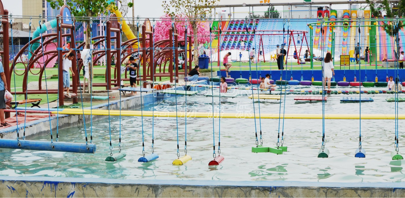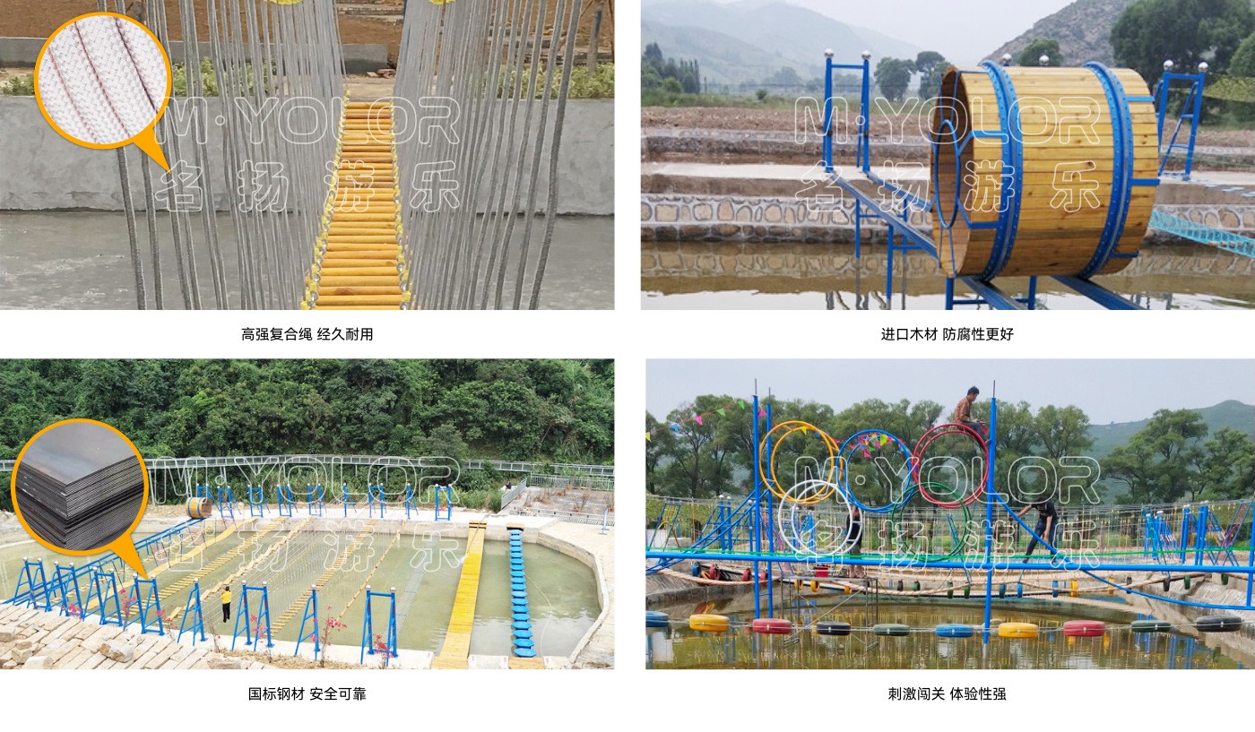 水上拓展是由兩岸水泥基礎上的兩套鋼構作為支撐。鋼構下方連接鋼索成U型,鋼索間有一定間隔,依托在水上的拓展活動,水上拓展兼詳細能和實踐的綜合素質教育,它以運動為依托,以培訓為方式,以感悟為目的。將介入者的潛能進行無窮挖掘,從而讓介入者充分體驗挑戰(zhàn)的高興和激情。