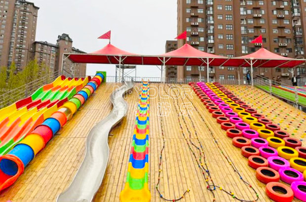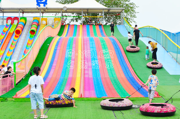 網(wǎng)紅滑世界樂(lè)園是由八大項(xiàng)目組合而成。一是七彩滑道坐在輪胎坐墊上從高處一滑而下,二是攀巖體驗(yàn)徒手攀爬登山的樂(lè)趣。三是S彎滑道-左右搖擺一沖而下。四是輪胎坡步步為營(yíng),一步一個(gè)圓圈。五是圓筒滑道-在一個(gè)小小圓筒里感受滑道的魅力。六是波浪滑道-好朋友并排而下,體驗(yàn)起起伏伏的滑行樂(lè)趣。七是攀爬網(wǎng)一手腳并用地攀登。八是登山繩體驗(yàn)─根繩子登山的驚險(xiǎn)和樂(lè)趣。無(wú)動(dòng)力滑世界一經(jīng)推出就深得游玩者的喜愛(ài)。規(guī)格可以根據(jù)場(chǎng)地定做。